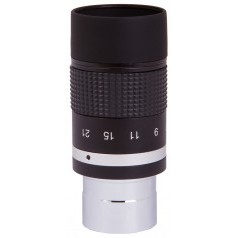 Окуляр с переменным фокусным расстоянием 7–21 мм. Данная модель дает широкий диапазон увеличений и может заменить собой несколько окуляров с постоянным фокусным расстоянием. На корпус нанесена шкала со значениями фокусного расстояния. Окуляр подходит для телескопов с фокусером 1,25".