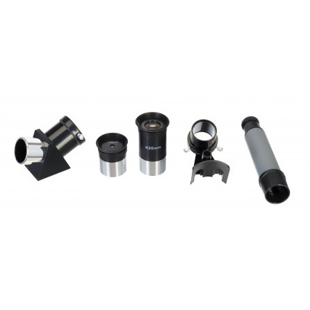 Оптическая труба установлена на экваториальную монтировку. Она надежна, имеет плавный ход, управляется вручную. Тренога сделана из алюминия и отличается высокой устойчивостью. Высоту каждой ножки треноги можно регулировать. Есть полочка для аксессуаров. Стандартный фокусер позволяет устанавливать на телескоп любые оптические аксессуары с посадочным диаметром 1,25 дюйма.